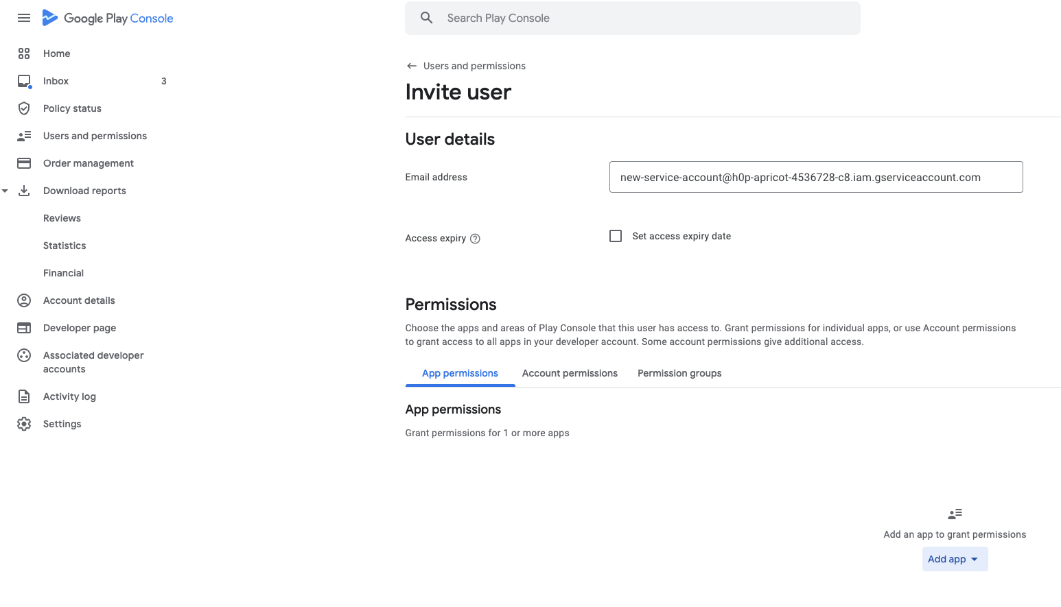 To track subscription status updates on Google Play, create and upload a service account JSON file to AppMetica. The steps for creating a service account are described in detail below.